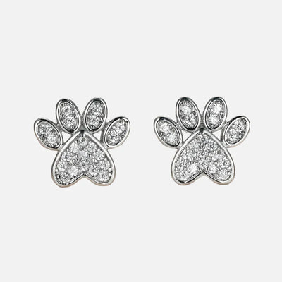 White Zirconia Paw Studs – Heart-Shaped Design
